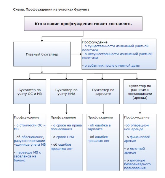 При распределении нагрузки между бухгалтерами - кто какое профсуждение составляет - ориентируйтесь на специальную схему из Актион 360 Бюджет. В ней мы распределили все по участкам учета. И разработали комплект из 18 профсуждений в спорных ситуациях — от изменения в учетной политике до учета имущества. Каждое профсуждение обеспечивает обоснование способов ведения учета и служит подстраховкой в тех случаях, когда правила нигде не прописаны.